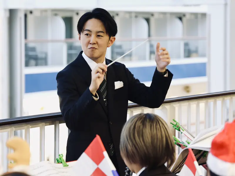 指揮を務めた浅井莉玖さん(経済学部3年次生)は「4年次生たちが引退し、新体制で初の歓送演奏ということで心配しましたが、みんなが楽しく演奏することができました。またクリスマスが近かったので楽しんで貰えるようクリスマスの曲を選び、いい演奏ができたと思います。新入生をいい体制で迎えられるよう、これからも頑張っていきます」と意気込みも踏まえて語ってくれました。