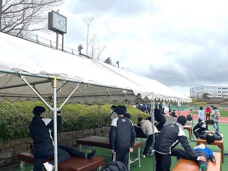 学生トレーナー部です。週に1回集まって、ストレッチングやマッサージ、筋力トレーニングの指導方法、などをコーチと相談しながら練習しています。また、部活動に励む高校生に対し、実際に指導を行っており実践的な活動を行っています。例年、力を入れて活動しているのは神戸ユニバーマラソンでの活動です。専用のブースを設けて頂き、ランナーの方々にテーピングやマッサージ、ストレッチングを行います。気になった方はぜひ一度見学にお越しください。