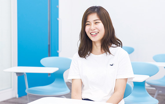3年次の留学をめざして、すべての学生が語学力を高めようとがんばっています。課題が非常に多くて大変ですが、留学に必要な力を身につけていることを実感でき、まわりの友人の努力する姿を見ると、私もやる気がわいてきます。高校生の頃よりも、目標を意識しながら自発的に学べるようになりました。