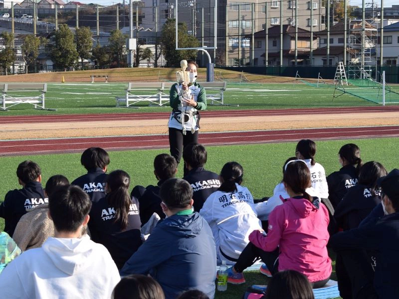 閉会式では、女子駅伝競走部主将の広内来幸さんが謝辞を伝え、大江秀和女子駅伝競走部監督が挨拶をし、「継続は力なり、今日の講習を続けて競技力向上に生かしてください」と締めくくりました。