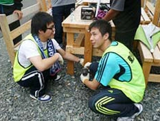 - テレビで見てもっと暗いものを想像していたけど、自分たちが準備不足だったうちわ作りを楽しんでくれた。元気だって思う反面、視察で見た現状を考えると、被災者は頑張って前を向いているんだと思った