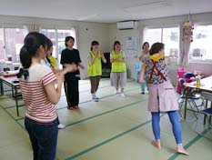 - 初日の石巻同様、うちわ作り、茶話会、子どもと遊ぶ活動を集会所内で行った