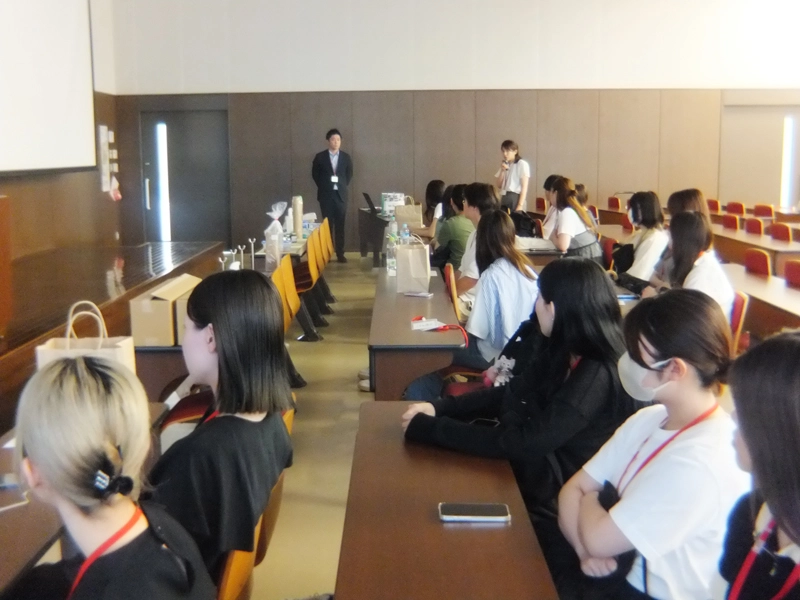経営学部の田中康介教授のゼミ(3年次生18人)と株式会社ユーハイム(以下ユーハイム)の産学連携の取り組みとして、「バウムクーヘンメニュー考案・販売プロジェクト」が今年4月にスタートし、6月12日にゼミ生らが考案したメニューやプロモーション方法に関するプレゼンを行いました。