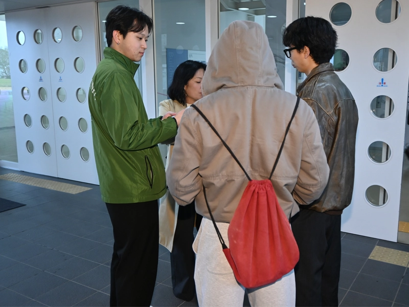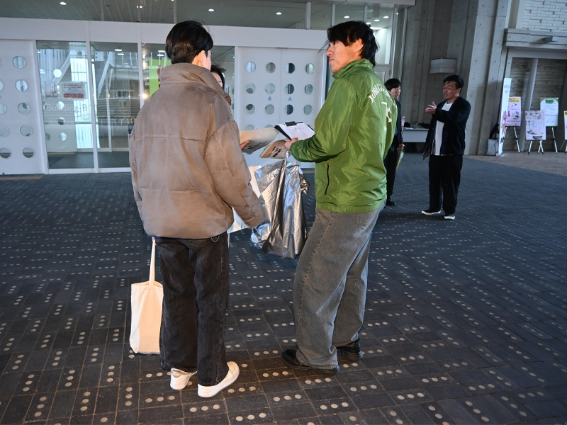 この日はマーケティングを学んでいる3年次生の生駒凉牙さんと川崎紀幸さんが神戸マルイのスタッフの皆さんと一緒に学生を対象にアンケートに取り組みました。2人は、神戸マルイを知っているか、入店したことがあるか、クレジットカードを持っているか、どんなカードがほしいか、などと学生に質問していました。ある学生は「神戸三宮センター街に行くと、いつも神戸マルイに立ち寄ります。エポスカードも持っていて、ゲームが好きなのでドラゴンクエストの図柄です」などと答えていました。