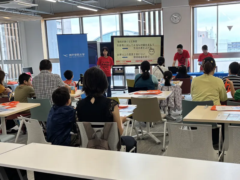 今回のイベントリーダーを務めた井上友希さんと鳩野優真さん(3年次生)は、「フェアトレードについて知らない参加者も多い中、私たちの話を真剣に聞いてくださったことがとても嬉しかったです。また、一緒にフェアトレードゲームを行う中で、参加者の皆さんが楽しそうに取り組んでくださる様子を見て、私たち自身もとても嬉しく、楽しい時間を過ごすことができました。今回のようなワークショップを通して、フェアトレードをより身近に感じていただけたら嬉しいです」と感想を述べました。