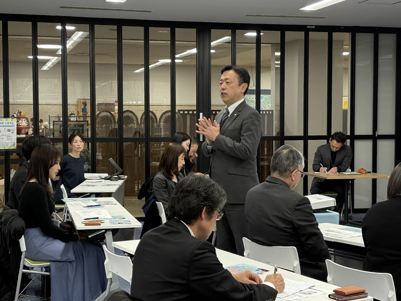 報告会当日は、酒造企業の担当者、大学コンソーシアムひょうご神戸、神戸市経済観光局、灘五郷酒造組合の関係者が参加し、1年間の集大成を発表しました。