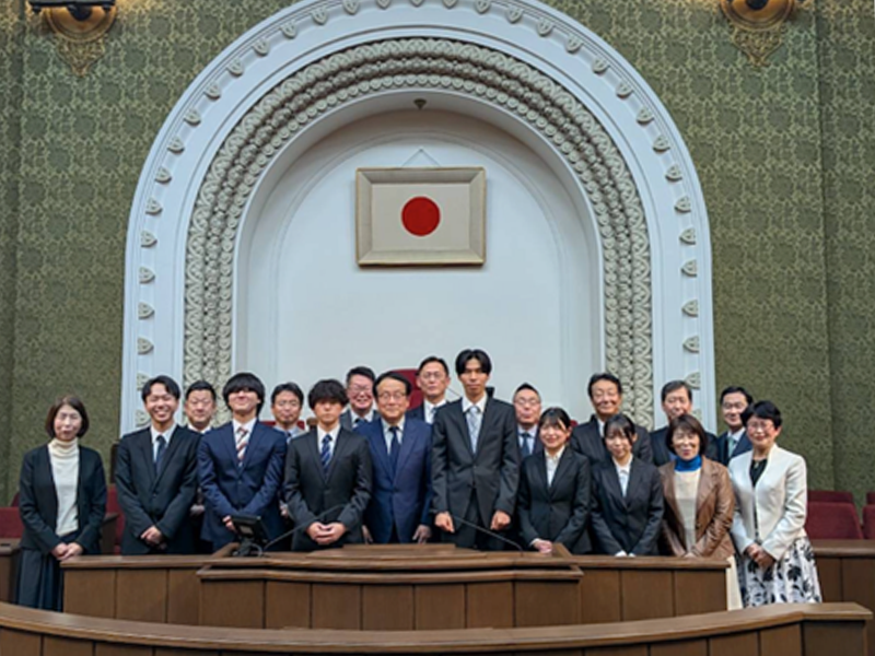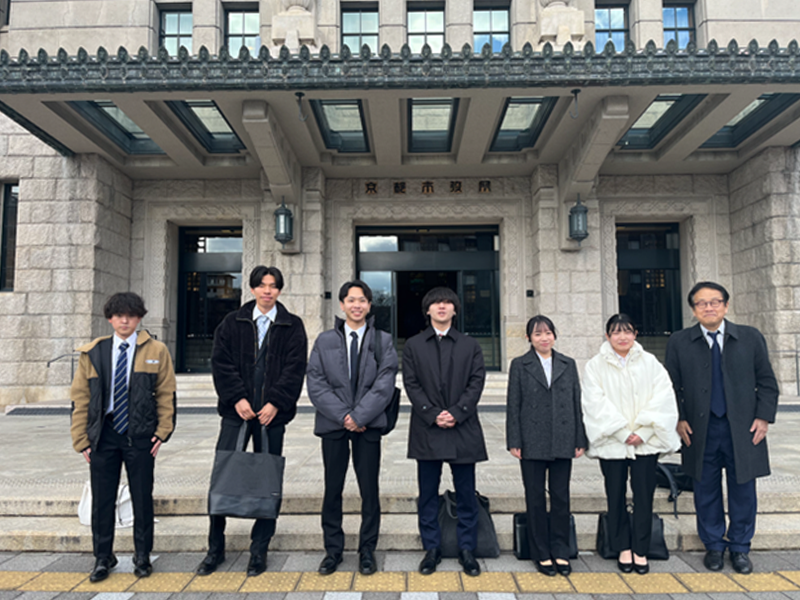 経済学部の中村亨教授ゼミ(3年次生)は1月9日、京都市中京区の市役所本庁舎の会議室で京都市議会議員の皆さんに「Staggered DIDによるOECD出生率に関する因果分析−緩やかな結婚制度は出生率増をもたらすのか−」をテーマにしたプレゼンテーションを行いました。中村亨教授も「地方分散政策の展望」のテーマで講演を行いました。