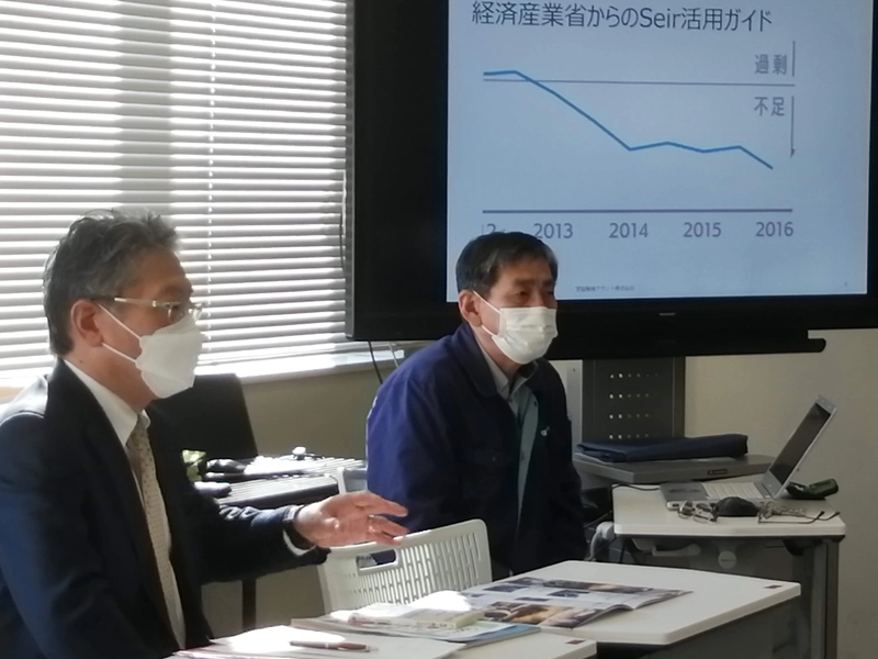 経済学部の林ゼミ・竹治ゼミ合同の講義(演習Ⅲ)で12月10日、ロボット・システムインテグレータ(SIer)である宮脇機械プラント株式会社の岡本淳社長と福岡浩憲システム技術部マネージャーの講演があり、3年次生約30人が受講しました。FA・ロボットシステムインテグレータ協会(SIer協会)の尽力で実現しました。