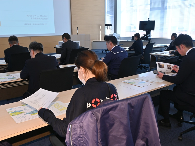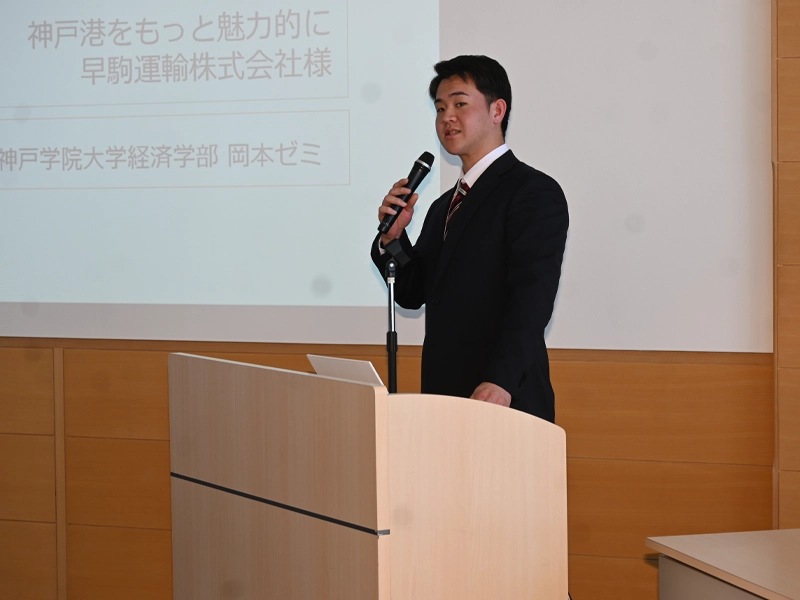 経済学部の岡本弥准教授の3年次生ゼミと早駒運輸株式会社(本社・神戸市中央区)が一般社団法人大学コンソーシアムひょうご神戸の企業課題解決プログラムで進めてきたプロジェクトの最終発表会が2月18日、ポートアイランド第1キャンパスで開かれました。
