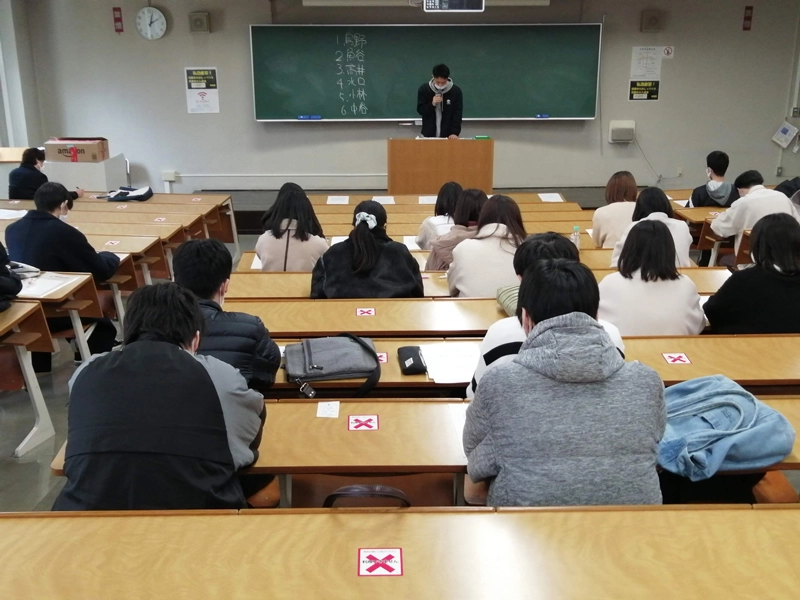 経済学部の関谷次博教授と林隆一教授の4年生のゼミ生約40人が12月24日、卒業論文発表会を行いました。