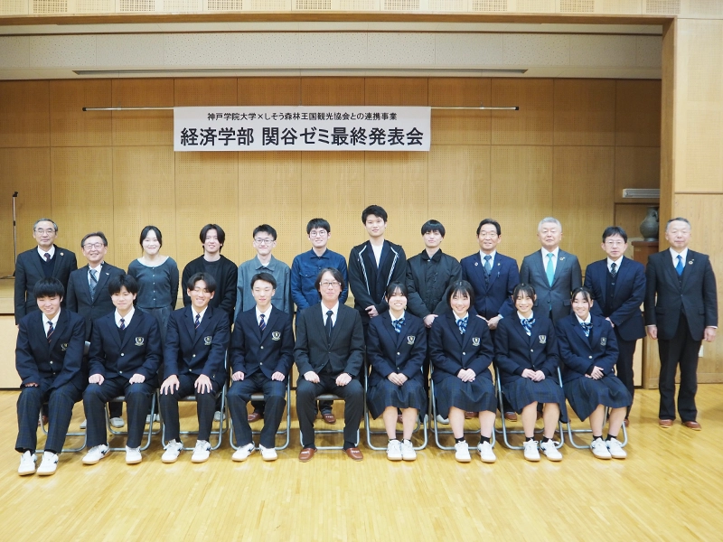 経済学部の関谷次博教授とゼミ生6人が1月27日に兵庫県立山崎高等学校で、西兵庫信用金庫地域活性化プロジェクトの最終発表会を行いました。