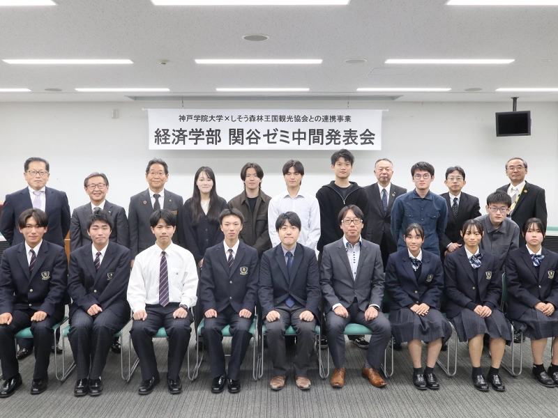 本プロジェクトは産官学連携として、本学有瀬キャンパスを拠点とする経済学部の関谷教授ゼミと人文学部の矢嶋巌教授ゼミが、宍粟市、たつの市の協力を得て、フィールドワーク等を通し、地域活性化に向けた企画立案を行うことを目的とし、神戸学院大学と、西兵庫信用金庫、公益財団法人しそう森林王国観光協会、たつの市観光協会の4者が連携した地域活性化プロジェクトです。
