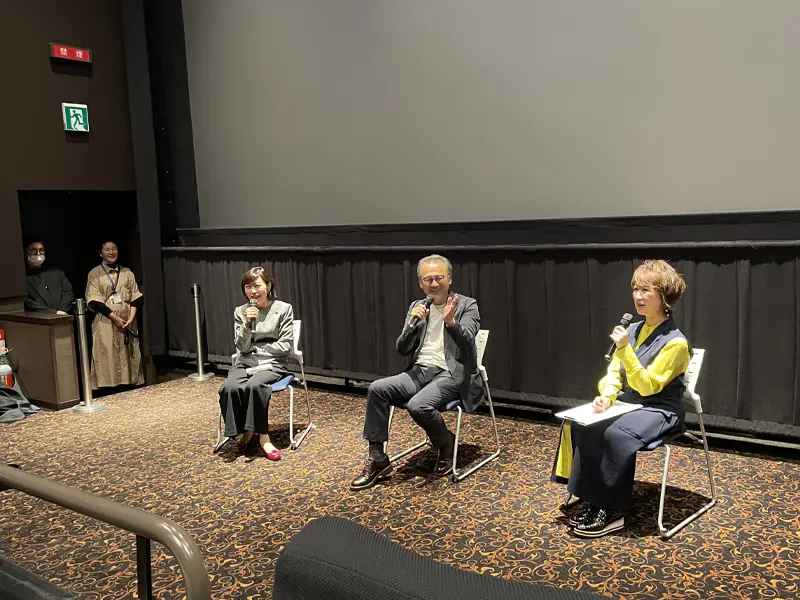 神戸出身の作家、妹尾河童さんの自伝的小説を映画化した作品で、水谷豊さん、伊藤蘭さんが主演し、萌黄の館、旧居留地などでロケした神戸ゆかりの映画で、上映後に撮影監督の会田正裕さんらによるトークショーがあり、楽屋でも仁科ゼミ4年次生の森分美和さんと2年次生の前谷優衣さん、池田可憐さん、姜妃芽夏さんが会田さんや映画コメンテーターの津田なおみさんらと懇談し、映画撮影に関わる資料の一部を見せていただく機会を得ました。