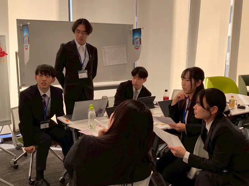 3年次生前期にセメスター留学から帰国後、荒島教授やマスティー講師のゼミで国際問題について学び、担当国の働きがいや経済成長に関する課題と大使役として担当する国の政府の対応策、国際課題解決のための政策をあらかじめ考えていた4年次生の中尾寛太さん、牧田綺姫さんと3年次生の重廣瑠夏さん、茂木大河さん、谷垣華英さん、豊原麻奈香さん、寺口春陽さん、石田のどかさんと、英語模擬国連への参加が3回目となる英語コース3年次生の田中葉菜さん、2回目となる英語コース1年次生の藤野陽香さんは、率先して議論に参加しました。