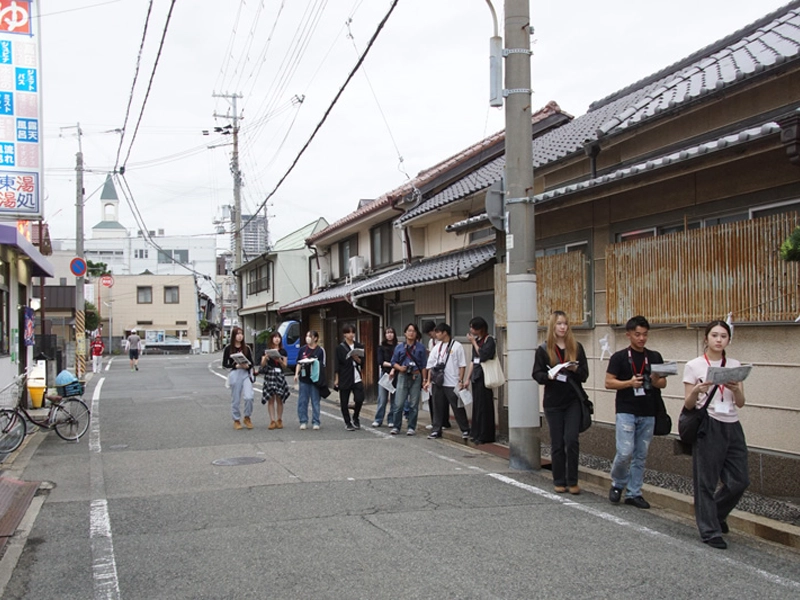 人文学部2年次前期の実践演習Ⅰ矢嶋ゼミは10月11日、高度経済成長期以降の明石市中心部における小売業の変遷について理解するために、明石駅から明石市大蔵本町の稲爪神社にかけてのフィールドワークを行いました。