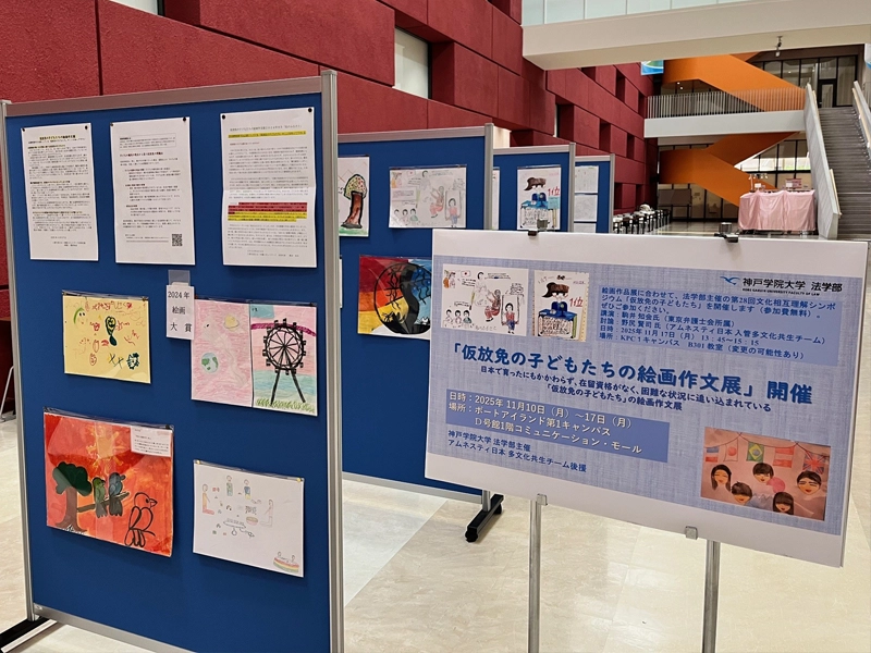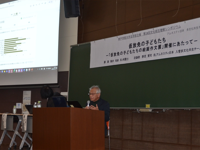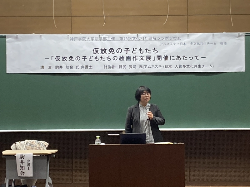 法学部は弁護士の駒井知絵氏を講師として招き、11月17日に、第28回文化相互理解シンポジウム「仮放免の子どもたち『仮放免の子どもたち絵画作文展(11月10日~11月17日)』開催にあたって」を開催しました。また、討論者としてアムネスティー日本 多文化共生チームの野尻賢司氏が参加しました。