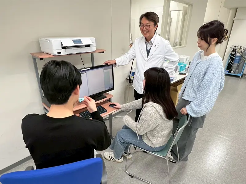 現在、本機器を用いた学生実習を実施しており、検査機器の操作方法だけでなく、正確な測定手技や患者への声かけなど、実践的な検査スキルの修得に大きな効果が確認されています。