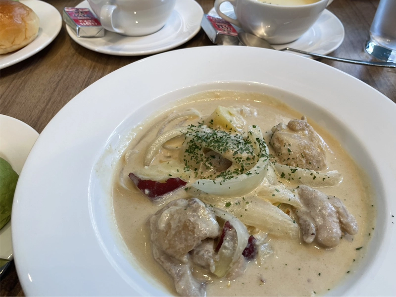じゃがいもとひき肉がたっぷりで食べ応えがあり、満足感のある一皿でした。植物性チーズとは思えないほどコクが深く濃厚な味わいが全体を引き立てていました。
