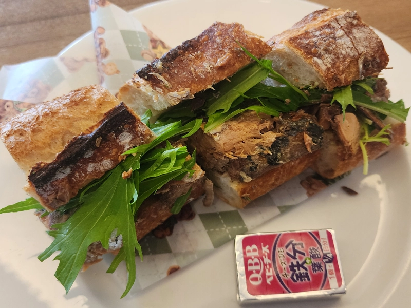 ベトナムのサンドイッチであるバインミーをアレンジ。栄養価の高いサバ缶で疲労回復、QBBチーズのチーズDE鉄分を使用し鉄とカルシウムを同時に摂ることができます。