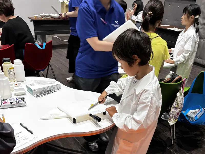 参加した保護者からは「仕事を休んで来た甲斐がありました!友人にも広めたいくらい、面白かったです!」「本格的な道具の貸し出しや説明があり、本当の授業のように真剣に取り組めました。終始子どもの眼差しが輝いていました!」といった感想をいただきました。