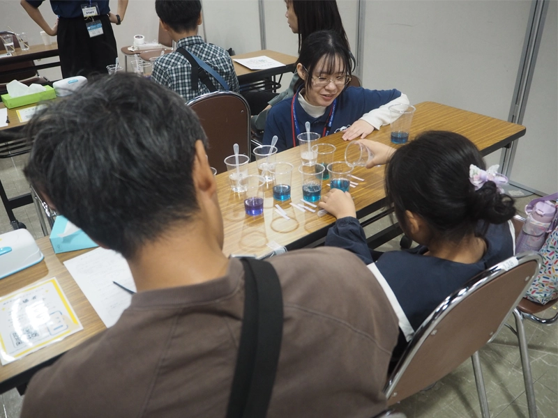 実験を行った学生は「普段学んでいることが役に立ってよかった」「初めての学外の活動だったが、うまく伝えることができたと思う」と参加者との交流から普段の学習の成果を感じたようでした。