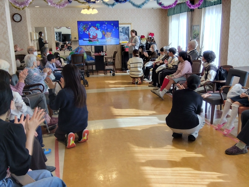 冒頭に副ホーム長の挨拶があり、「あわてんぼうのサンタクロース」の歌を一緒に歌った後、プログラムのアイスブレイクとして「サンタさんが言いました」というジェスチャーゲームを全員で行いました。