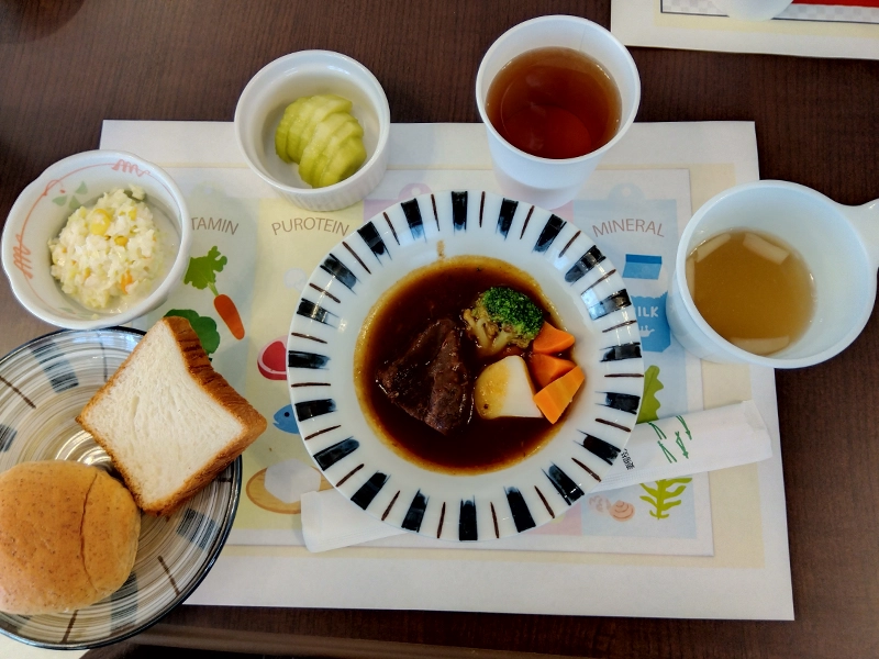昼食は29日の「肉の日」ということで牛肉の赤ワイン煮をはじめ、スープ、コールスローサラダ、パン、フルーツなど、おしゃれなランチを入居者の方と子ども達、学生が一緒に会話をしながら楽しみました。また、昼食後には、副ホーム長がサンタ風に白い袋に沢山のお菓子を入れて登場し、子ども達は好きなお菓子を選んで喜んでいました。