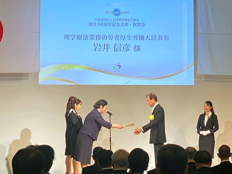 総合リハビリテーション学部の岩井信彦教授が日本理学療法士協会60周年記念式典で厚生労働大臣表彰を受けました