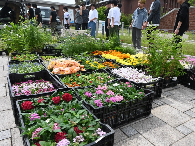 キャンパスの美化、緑化を通じて本学を訪れる人や在学生、教職員に気持ちよく過ごしてもらいたいというのが狙いです。地域活性化の方法を学んでいる学生たちに対しては、多くのコミュニティーには外部からの入り口付近に花壇があることが多く、地域の人と仲良くなるには園芸の知識や技術が役立つと伝えます。