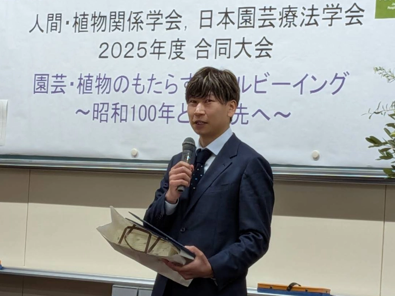 また、人間・植物関係学会総会で、菊川講師が「地域資源を活用した園芸活動に関する実践的研究」で学会賞の「奨励賞」を受賞しました。受賞理由は、「人と植物の関わりを中心に、様々な観点から研究活動を継続している」ことが挙げられました。