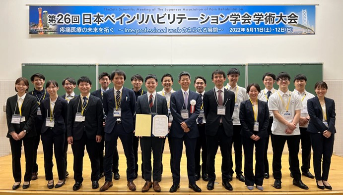 「第26回 日本ペインリハビリテーション学会学術大会」が6月11、12両日に神戸市で開催され、大学院総合リハビリテーション学研究科医療リハビリテーション学専攻の服部貴文さん(博士後期課程)の発表演題「変形性膝関節症における運動誘発性疼痛に関与する要因」が最優秀演題賞を受賞しました。服部さんの受賞は、2020年の同学会第24回大会に続き、2回目となります。