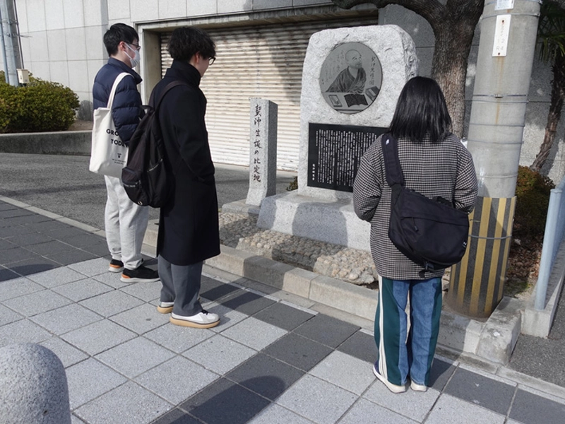 大学院人間文化学研究科で矢嶋巌教授が担当する「歴史情報論特殊講義Ⅱ」を受講する院生らが1月11日、近代工業の発展と住宅衛星都市化により近世城下町から大きな変貌を遂げた尼崎市の尼崎城下町付近でフィールドワークを行いました。