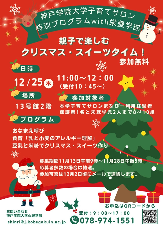 子育てサロン「まなびー」特別プログラム『親子で楽しむ クリスマス・スイーツタイム!』