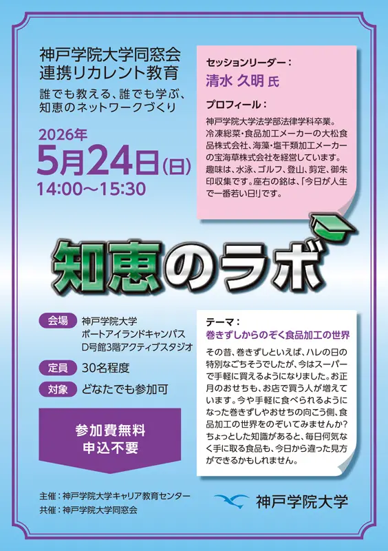【神戸学院大学同窓会連携リカレント教育】知恵のラボ