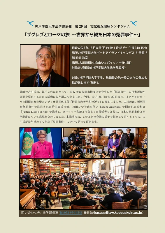 【法学部主催】第29回文化相互理解シンポジウム「ザグレブとローマの旅 ~世界から観た日本の冤罪事件~」