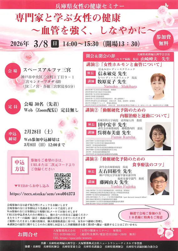 【兵庫県女性の健康セミナー】専門家と学ぶ女性の健康 ~血管を強く、しなやかに~