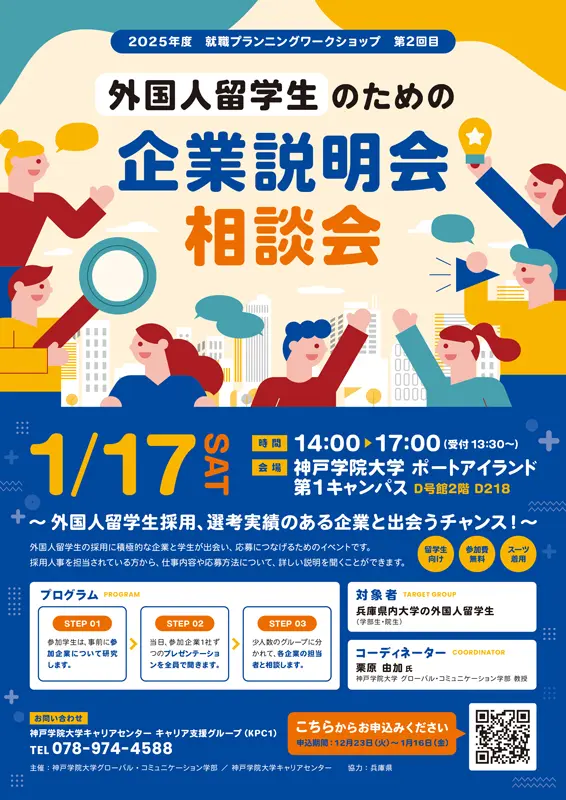 【2025年度 就職プランニングワークショップ 第2回目】 外国人留学生のための企業説明会 相談会