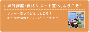 課外講座・資格サポート室へ、ようこそ! サポート室ってどんなところ? 割引制度情報もこちらからチェック!