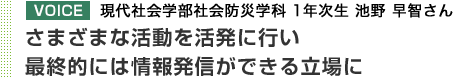 「防災女子」には、防災・社会貢献ユニットの2年次以上の希望者と社会防災学科の1年次の女子学生全員が参加。現在、総勢18名で活動しています。立ち上げ当初は、さまざまな年代の女性との意見交換を行う神戸市婦人市政懇談会や、「ひょうご女性未来・縹(はなだ)賞」の防災に関するパネルディスカッションに参加。若いお母さんたちが組織するNPO法人主催の「Stand for mothers@大阪 防災ワークショップ」に防災食づくりの補助スタッフとして加わるなど、自分たちにどのようなことができるかを幅広くリサーチしてきました。