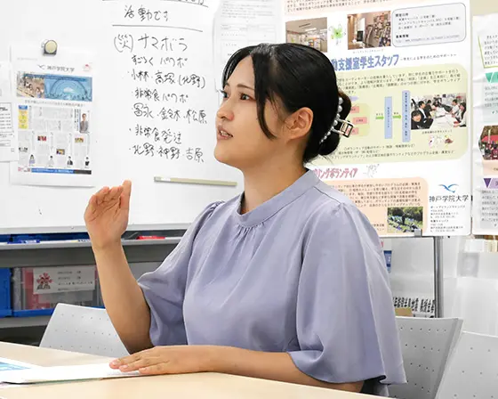 何か人の役に立つことがしたいと考え、ボランティア活動支援室の学生スタッフになりました。普段関わることの少ない高齢者や兵庫県赤十字血液センターの方々など、さまざまな交流ができるのも医療班の魅力です。