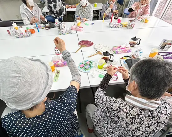 毎月第4土曜日には、地域包括支援センターの方々と一緒に集会所に来られた高齢者の皆さんにお茶やお菓子を提供する「ふれあい喫茶」を開いています。ほっとくつろげる憩いの場を提供するとともに、最近では体操や脳トレ、クイズなどのレクリエーションも企画するなど、より楽しんでもらえるよう工夫しています。