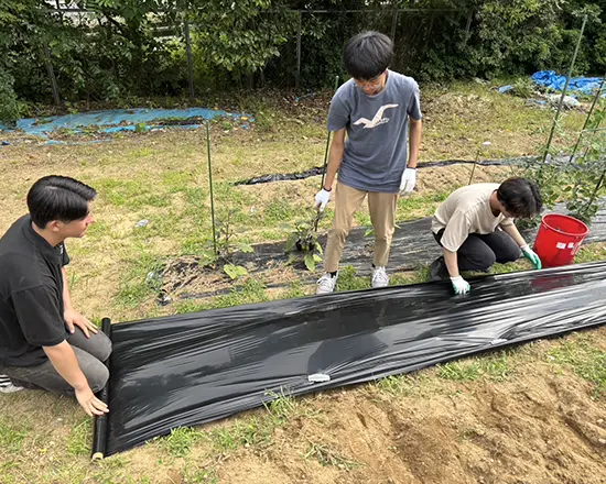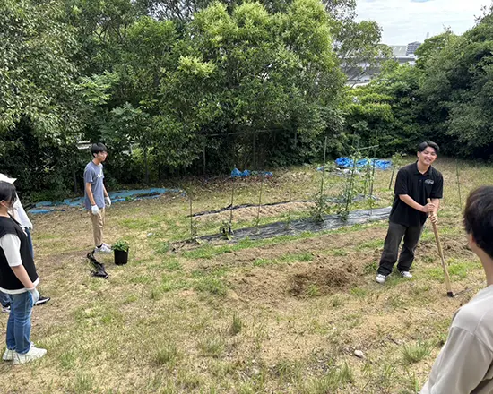 さらには農業の楽しさややりがいを知ってもらおうと、あいな里山公園(神戸市北区)で、田植えや稲刈りなどの活動も行ってきました。2021年からは、コロナ禍でもできる活動を増やそうと有瀬キャンパス内の農園で作物を育てる「農園スマイルプロジェクト」をスタートさせ、現在も継続して取り組んでいます。