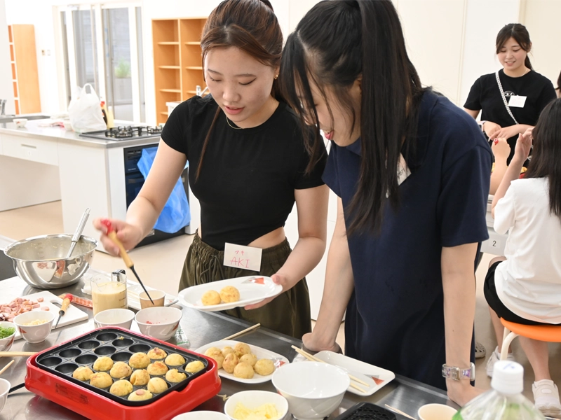「日本語・日本文化研修」で来日した海外協定校の学生と本学学生がたこ焼きを作って交流しました