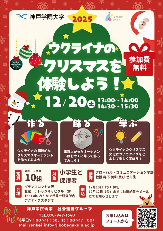 神戸学院大学森下ゼミでは、半年間の海外留学をゼミ生全員が経験しています。ウクライナのクリスマスの文化を学びながら、世界でひとつだけのオーナメントを作ってみよう!