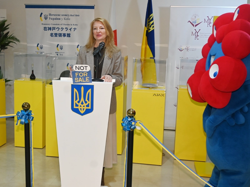 大阪・関西万博2025のウクライナパビリオンに展示され、会期終了後に松口正記念ウクライナ研究センター(ポートアイランド第2キャンパス)に譲渡された品11点のお披露目式が12月18日に同センターと隣接の在神戸ウクライナ名誉領事館で開かれました。