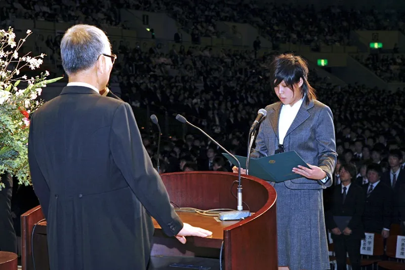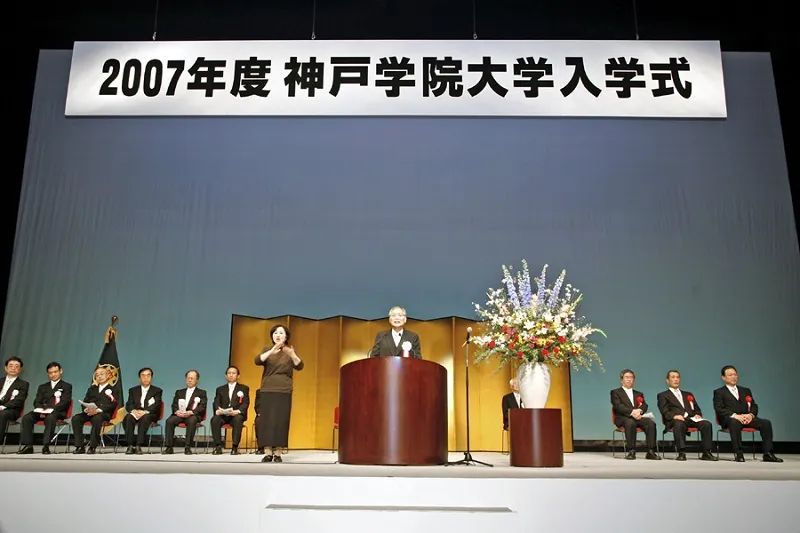 諸君、神戸学院大学は「公明正大、自由で明るい」と言われてきました。さらに最近では「元気のいい大学」「将来に期待がもてる大学」とまでの評価をいただいています。21世紀型の「地域とともに学び、世界にはばたく」新しい大学を目指して、われわれとともに自由で明るいキャンパスで激論を戦わしましょう。諸君とともに神戸学院大学に21世紀型の新しい文化を創造していきたいと思っています。どうか、本学在学中が最高の青春であったと、思い出に残るような積極的な学生生活を築かれますよう、祈念して告辞といたします。