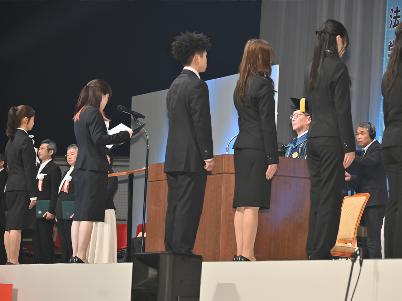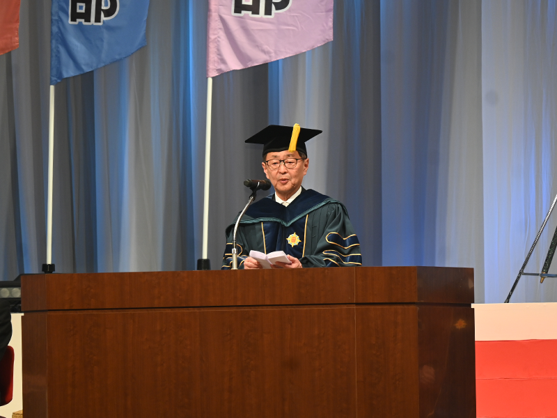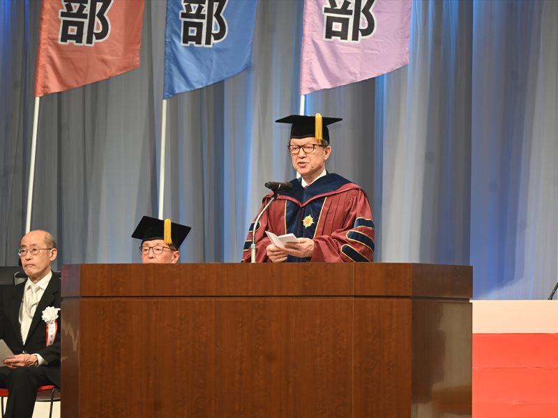 備酒学長は式辞で、「大学での学びと、さまざまな経験を通して、夢と希望を現実のものとしてください」と呼びかけました。(学長式辞全文はこちら)
