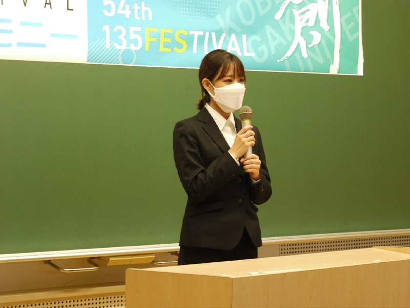 大学祭「第54回135FESTIVAL」が10月31日、ポートアイランド第1キャンパスで始まりました。昨年はコロナ禍でウェブ開催となり、今年はオンライン併用とは言え2年ぶりの対面での開催です。感染防止のため、例年のように模擬店は出店していません。