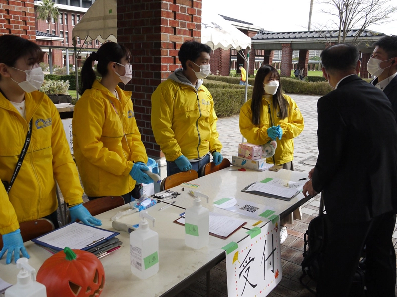 体温測定、マスク着用の確認など感染防止策を受付で実施させていただきます。天候などにより変更もありますので。詳細は大学祭ホームページでご確認ください。こちら