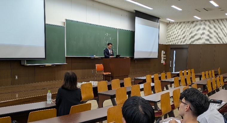 第1回は、講義に先立ち同窓会を代表して常任幹事長の今岡健一さんがあいさつし、同窓会の紹介と同窓会主催の就職支援イベント「社会人へのステップアップセミナー」への参加呼びかけを行いました。